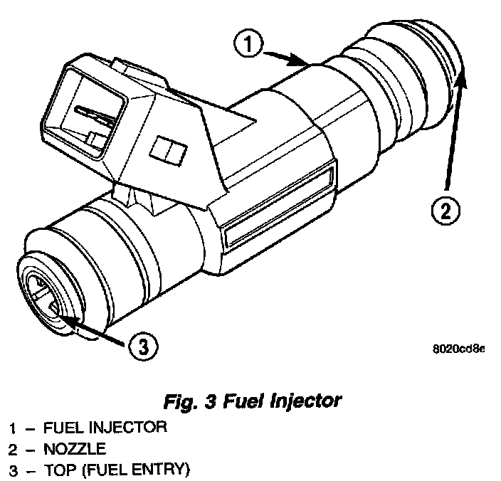 The fuel injectors are electrical solenoids (Fig. 3). The injector contains a pintle that closes off an orifice at the nozzle end. When electric current is supplied to the injector, the armature and needle move a short distance against a spring, allowing fuel to flow out the orifice. Because the fuel is under high pressure, a fine spray is developed in the shape of a hollow cone. The spraying action atomizes the fuel, adding it to the air entering the combustion chamber. Fuel injectors are not interchangeable between engines.