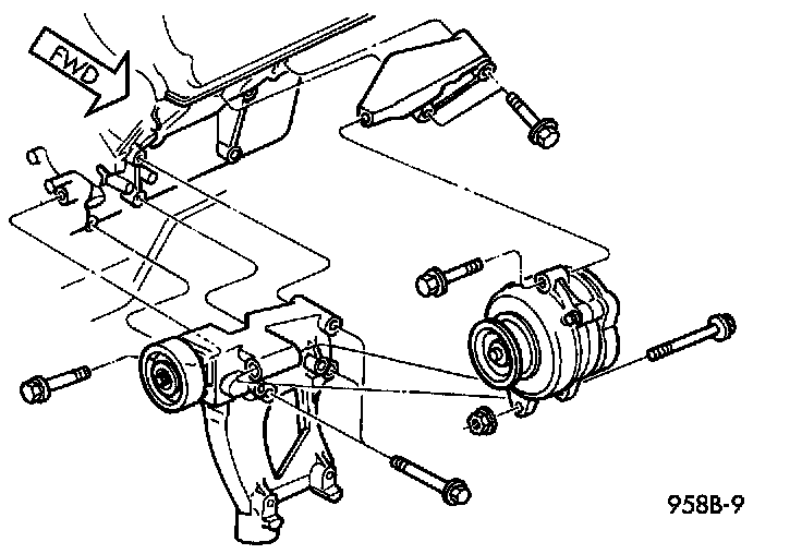 6. Loosen adjusting bolt on idler to allow removal of the generator drive belt.
