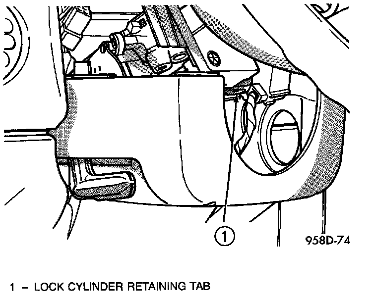 4. Place key cylinder in RUN position. Depress retaining tab and remove key cylinder.