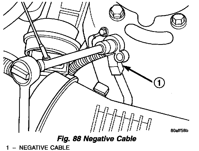 1. Disconnect battery negative cable at left strut tower (Fig. 88).