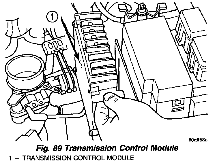 3. Remove Transmission Control Module (TCM) and wiring (Fig. 89).
