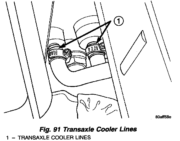 6. Remove transaxle cooler lines (Fig. 91).