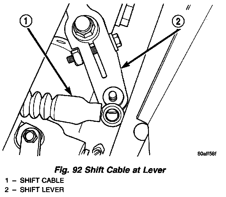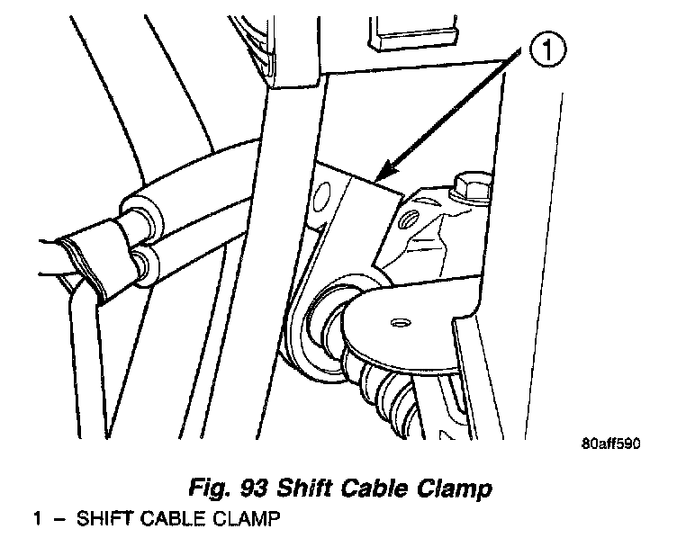 7. Remove shift cable at lever and at clamp on transaxle (Fig. 92) (Fig. 93).