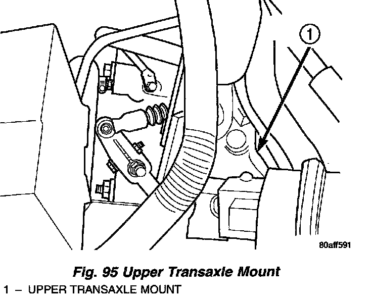 9. Remove left upper transaxle mount top bolts (Fig. 95).