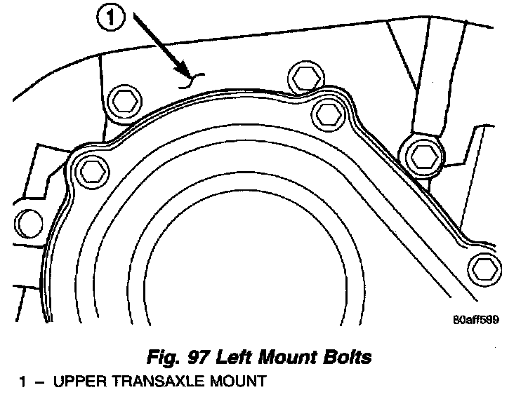 13. Remove remaining left upper mount bolts (Fig. 97).