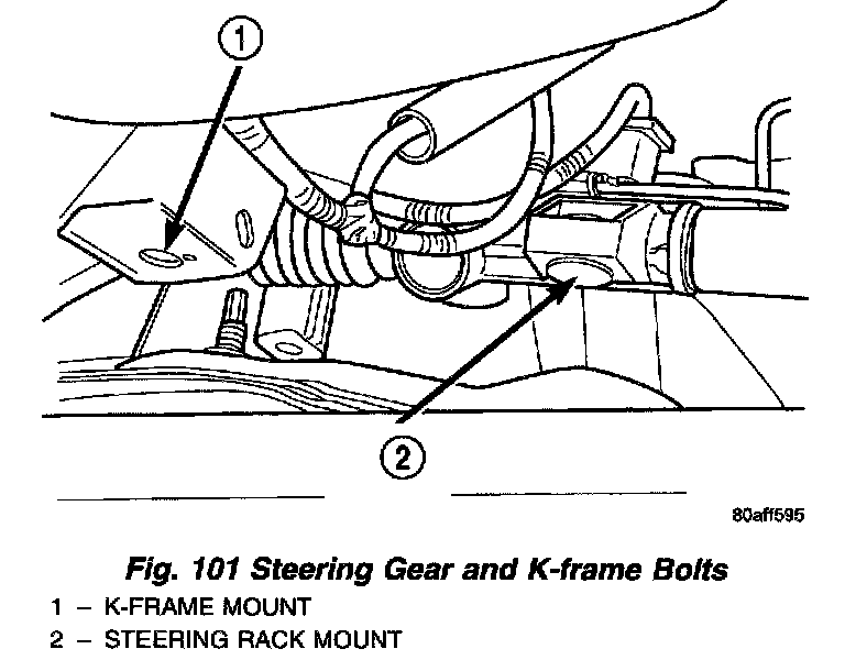 27. Remove left side steering gear bolts. Remove left side K-frame bolts (Fig. 101).