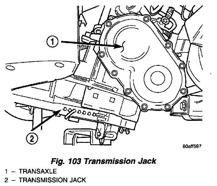 29. Position transmission jack under transaxle and support with safety chain (Fig. 103).