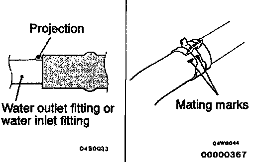 (2) Align the mating marks on the radiator hose and hose clamp, and then connect the radiator hose.