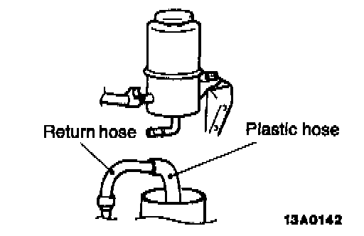 3. Connect a plastic hose to the return hose, and drain the oil into a container.