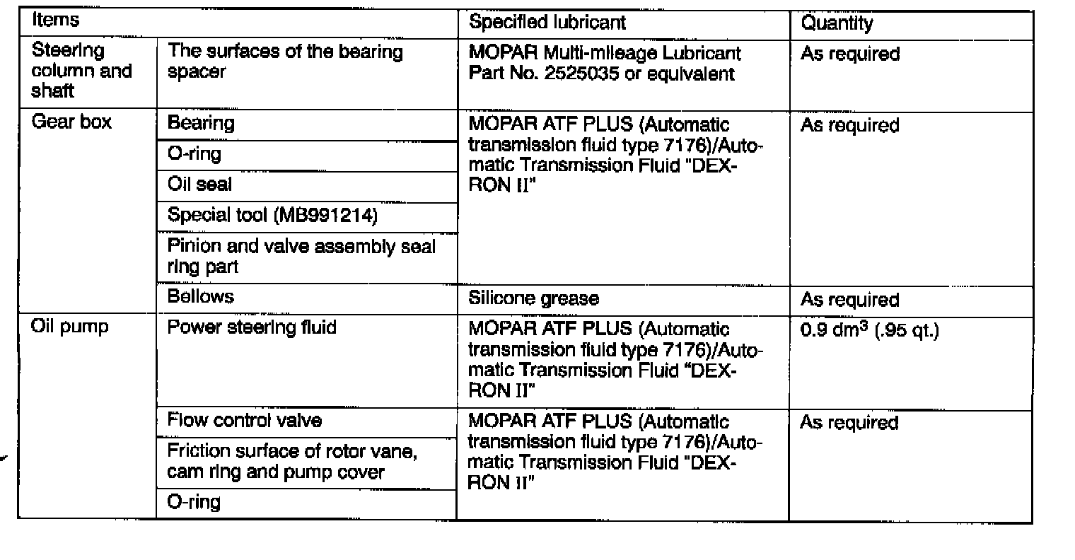 Power Steering Fluid: Specifications