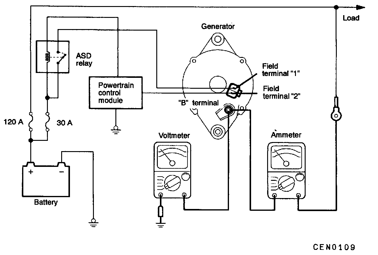 - If insufficient electrical load is used while testing, the specified level of current may not be output even though the generator is normal. In such cases, increase the electrical load by leaving the headlights on with the engine oft to discharge the battery before testing.