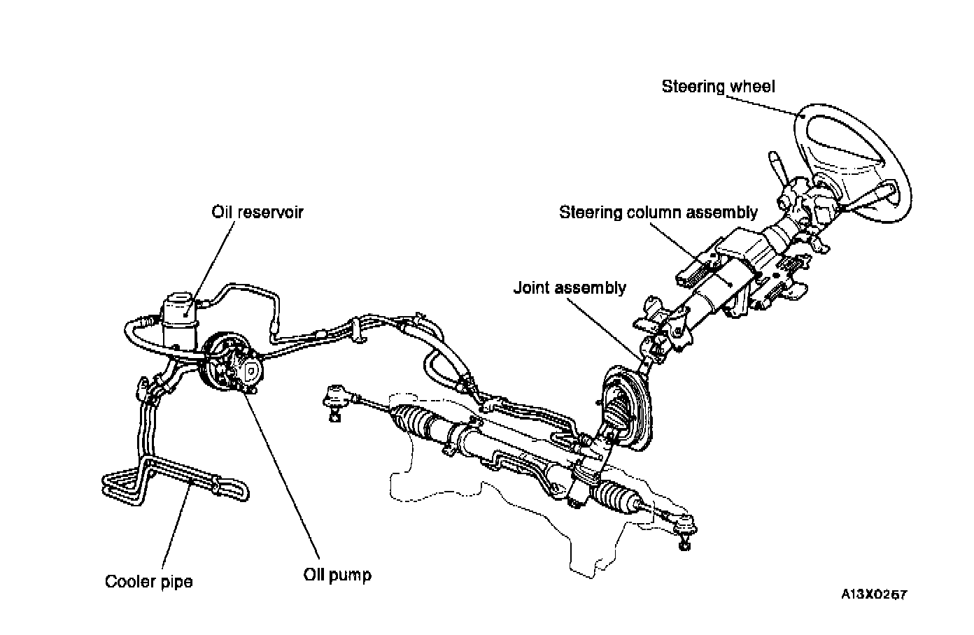 The steering column in ail vehicles has a shock, absorber mechanism and a tilt steering mechanism. A vane-type oil pump with a fluid flow control system included has been adopted.