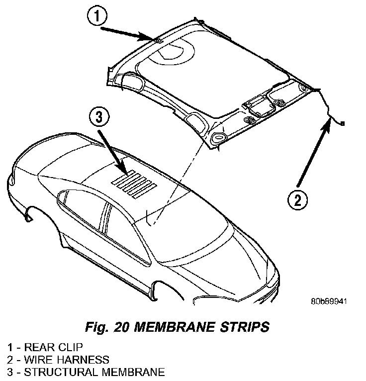 NOTE: IT IS NOT NECESSARY TO APPLY LOCAL PRESSURE IN THE AREA OF THE STRUCTURAL MEMBRANE, THE SHAPE AND STIFFNESS OF THE HEADLINER WILL PROVIDE PROPER PRESSURE TO ALLOW THE ADHESIVE TO CURE PROPERLY.