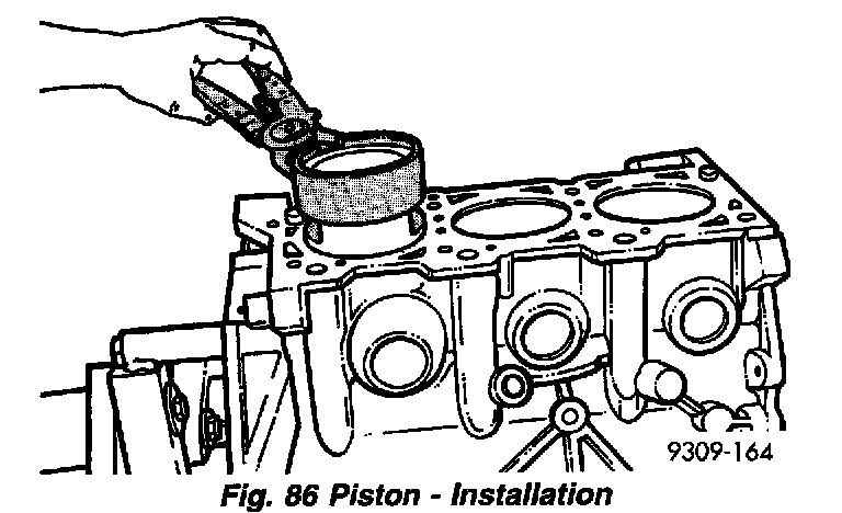3. Before installing pistons and connecting rod assemblies into the bore, ensure that compression ring gaps are staggered so that neither is in line with oil ring rail gap (Fig. 85).