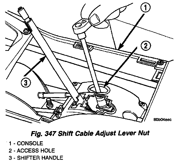 (4) With the ignition in the lock position, attach shift cable eyelet to shift pin (Fig. 348).