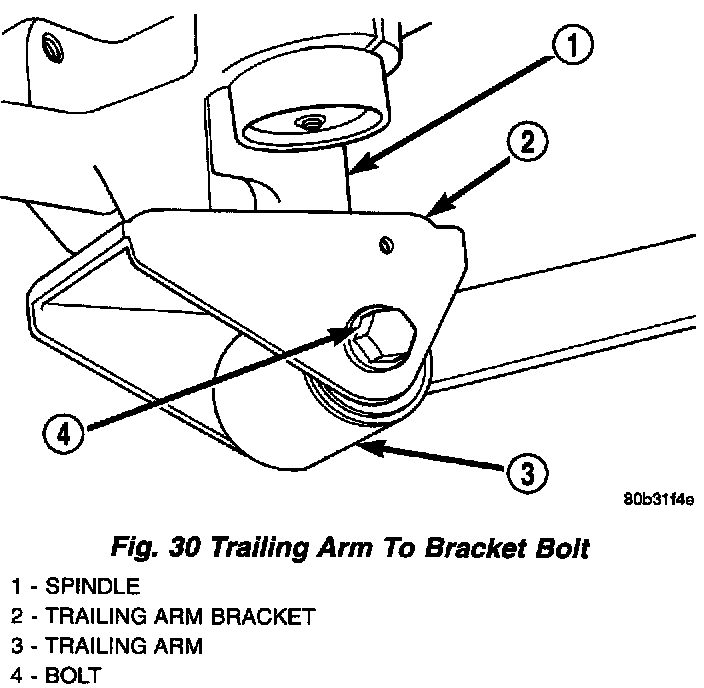 3. Install bolt attaching trailing arm to trailing arm bracket on bottom of spindle. Do not fully tighten attaching bolt at this time.