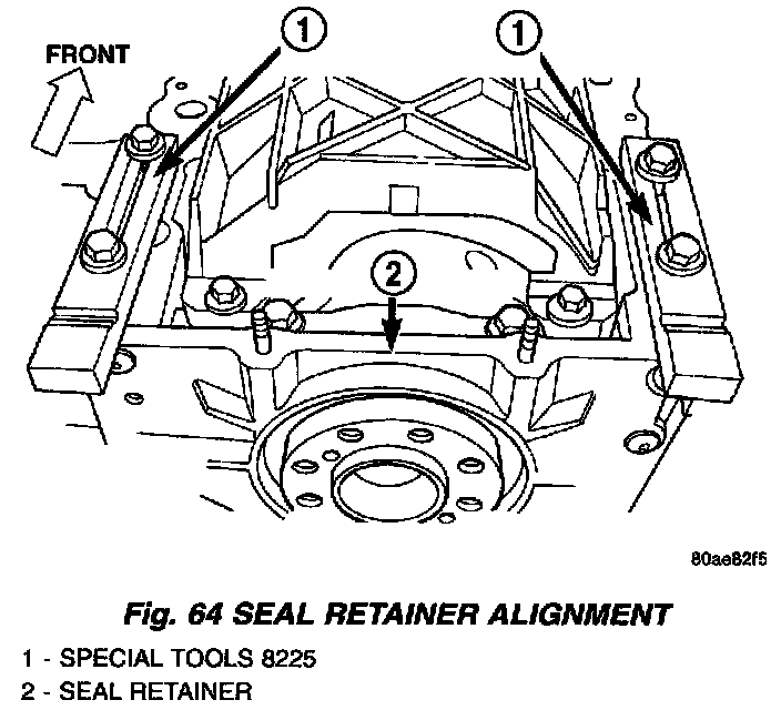 4. While applying firm pressure to the seal retainer against Special Tools 8225 (Fig. 64), tighten seal retainer screws to 12 Nm (105 in. lbs.).