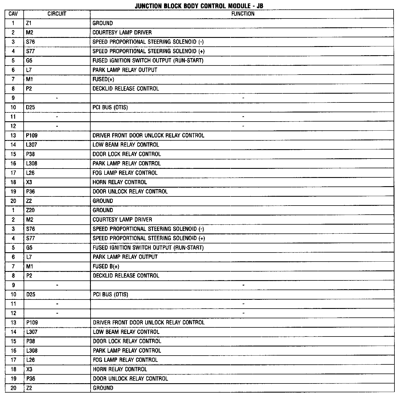 Junction Block Body Control Module - JB:
