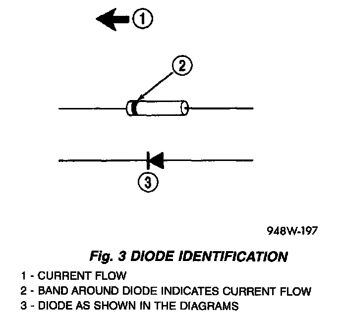 5. Install the new diode in the harness, making sure current flow is correct. If necessary refer to the appropriate wiring diagram for current flow.