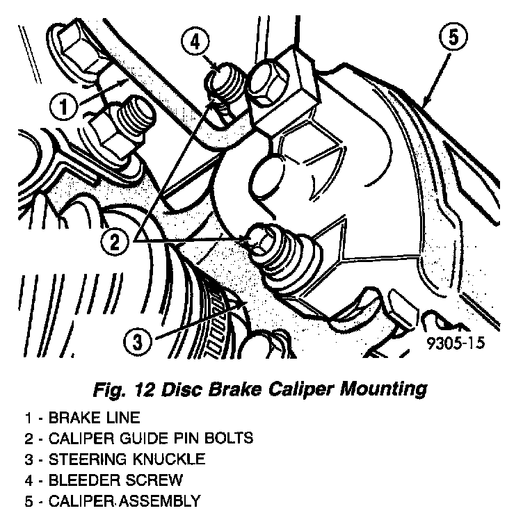9. Install front brake caliper on steering knuckle. Install the caliper to steering knuckle attaching bolts and tighten them to a torque of 22 Nm (192 inch lbs.).
