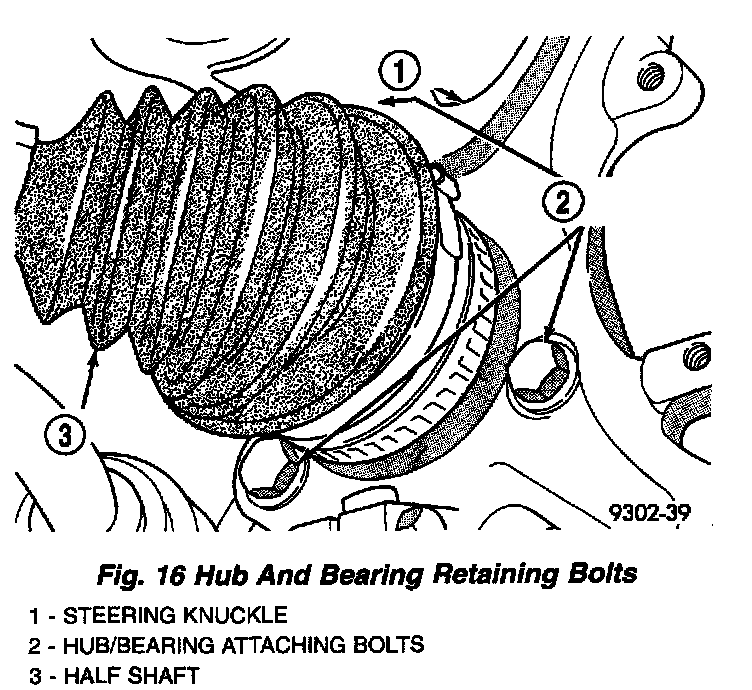 8. Remove the 3 steering knuckle to hub and bearing assembly attaching bolts.