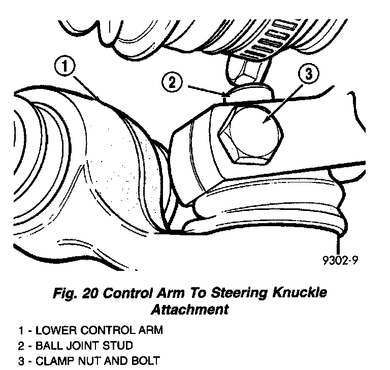 10. Remove the ball joint stud to steering knuckle attaching nut and bolt.