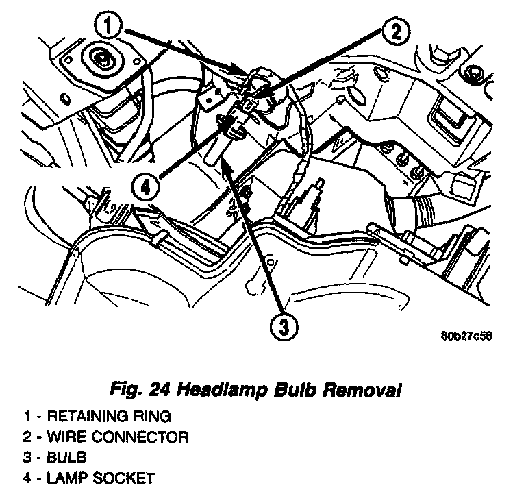 2. Rotate retaining ring (High beam or Low beam) and pull lamp socket from headlamp housing.