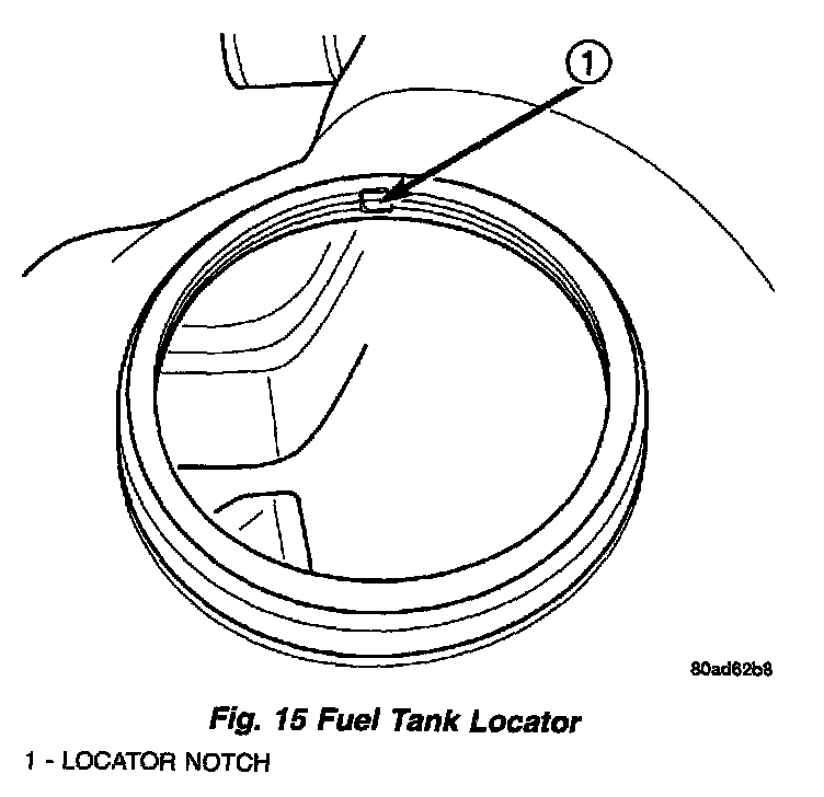 2. Position fuel pump in the tank. Make sure the alignment tabs on the underside of the fuel pump module flange sits in the notches on the fuel tank (Fig. 15).