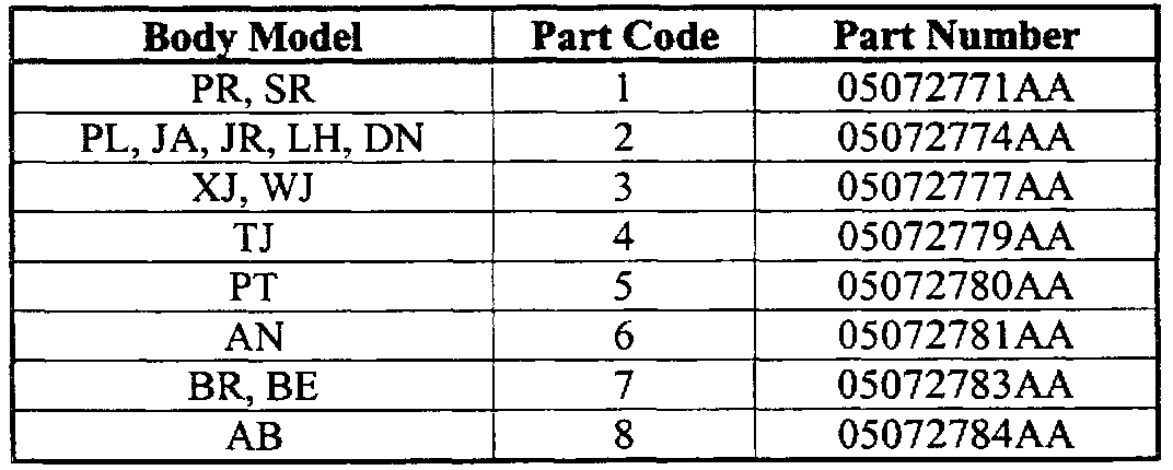 ^ Entering the VIN into the DIAL VIP system (body model information) along with the table as shown (all dealers):