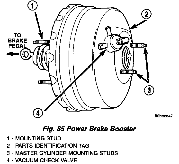 The power brake booster is vacuum-operated. The vacuum is supplied from the intake manifold on the engine through the power brake booster check valve .