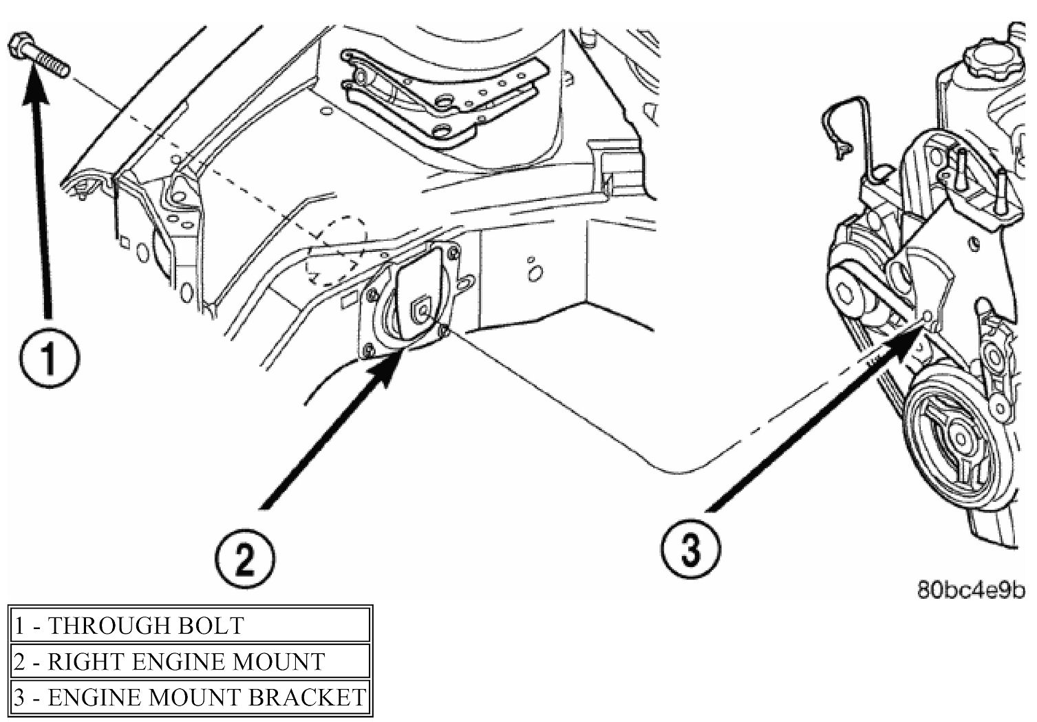 12. Remove right engine mount to engine mount bracket through bolt.