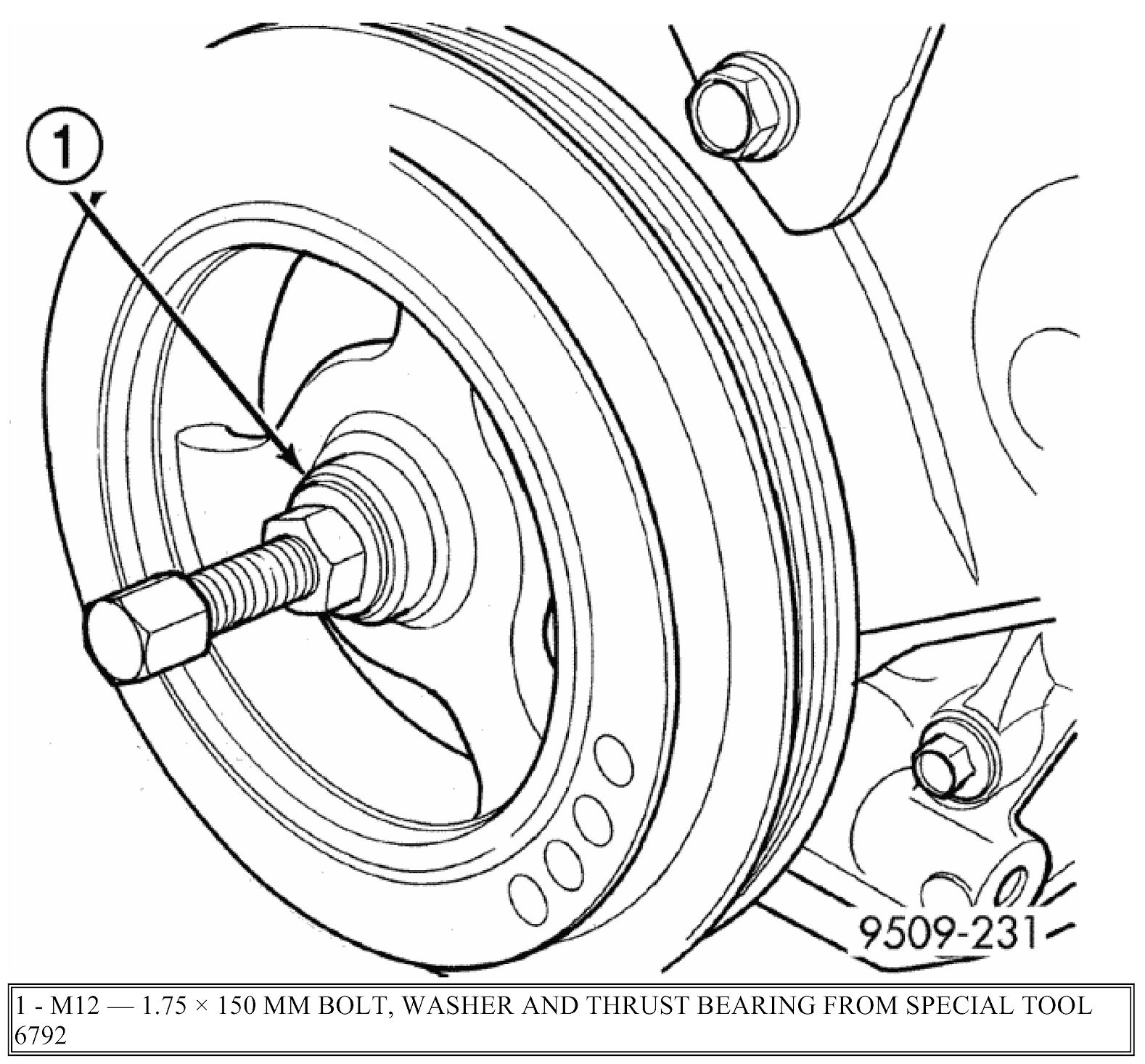 8. Remove crankshaft damper bolt. Remove crankshaft damper.