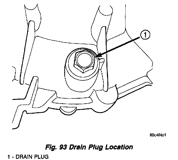 All NV T350 (A-578) transaxles are equipped with a drain plug. The drain plug is located on the lower right side of the transaxle differential housing (Fig. 93). Tighten drain plug to 28 Nm (250 inch lbs.)