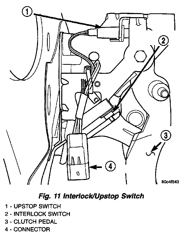 7. Connect interlock/upstop and stop lamp switch connectors.
