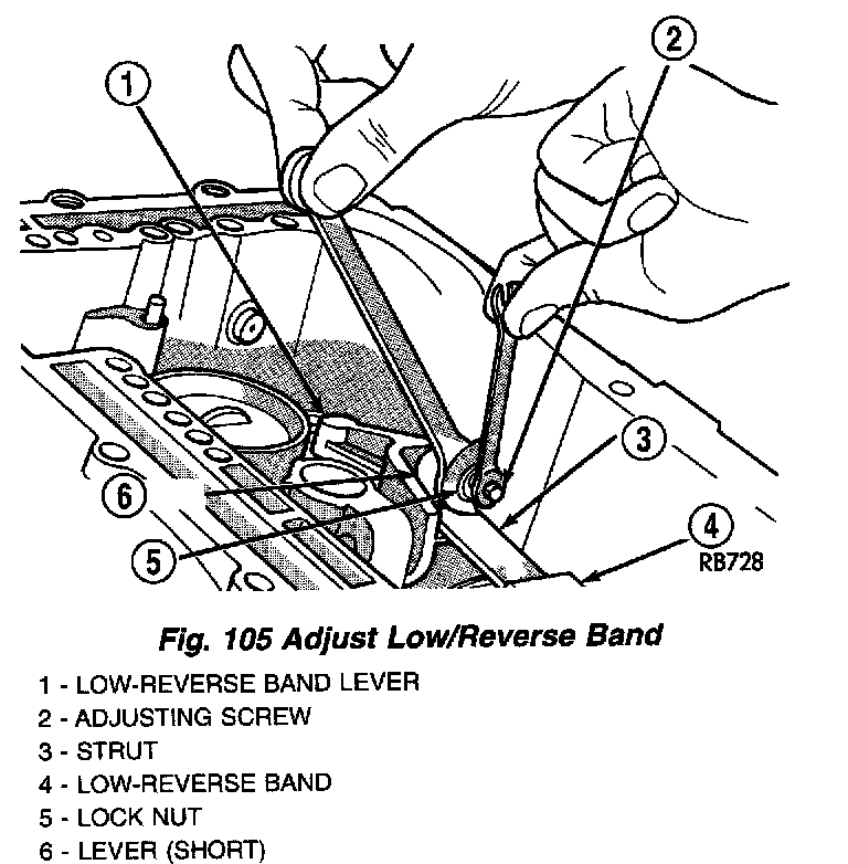 The transmission oil pan must be removed for access to the rear (low/reverse) band adjusting screw.