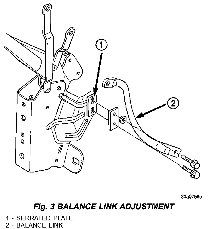 4. With the balance link adjusting bolts loosened, allow the balance link to seek proper position.