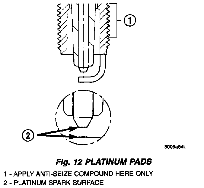A thin platinum pad is welded to both or center electrode end(s). Extreme care must be used to prevent spark plug cross threading, mis-gaping and ceramic insulator damage during plug removal and installation.