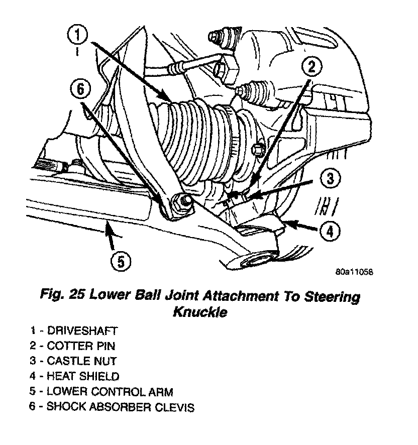 8. Remove cotter pin and castle nut from the stud of the lower ball joint .