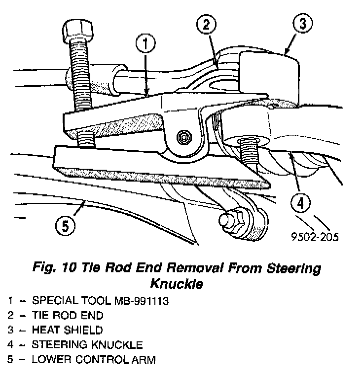 6. Remove the tie rod end from the steering knuckle using Remover, Special Tool MB-991113.