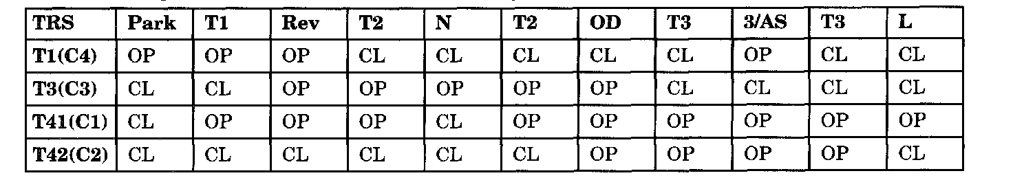 Theory of operation: The C1 through C4 (T1, T3, T41, and T42) sense circuits communicate the shift lever position to the TCM. Each circuit is terminated at the transmission with a switch. Each switch can be either open or closed, depending on the shift lever position. The TCM can decode this