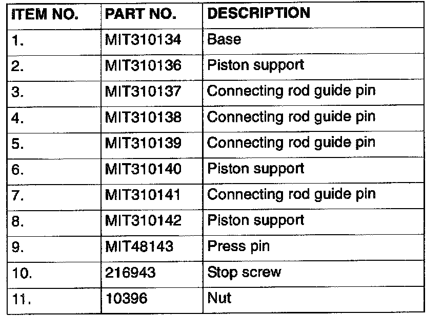 7. Remove the piston assembly from the base. Remove the guide pin and press pin from the assembly.