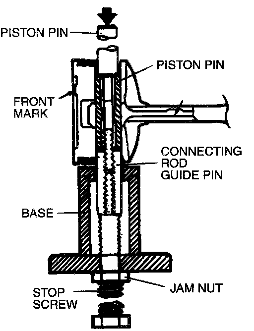 6. Press the piston pin through the connecting rod until the guide pin contacts the stop screw.