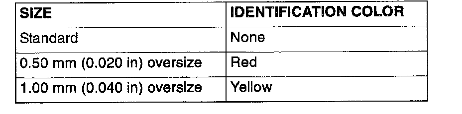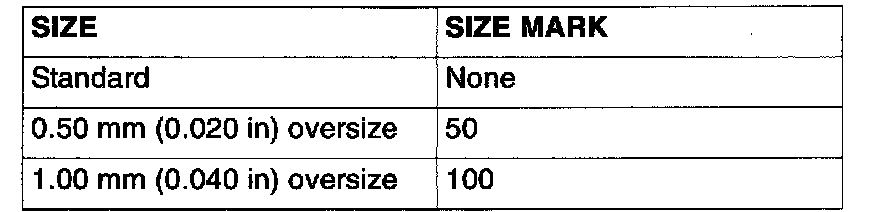 NOTE: Size marks on piston rings are as follows.