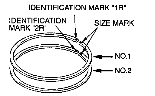 1. To prevent wrong installation, check the identification mark of each piston ring. The identification mark is stamped near the ring gap: