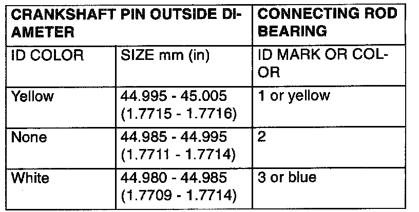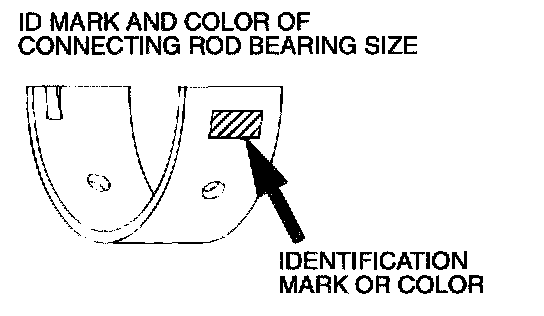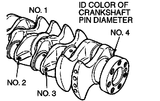 2. If the crankshaft pin outside diameter ID color is yellow, for example, select a bearing whose ID mark is 1 or ID color is yellow. If there is no ID color paint on the crankshaft, measure the pin outside diameter and select a bearing appropriate for the measured value.