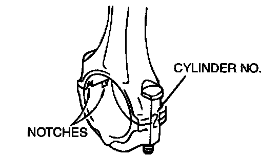 1. Verifying the mark made during disassembly, install the bearing cap to the connecting rod. If the connecting rod is new with no index mark, make sure that the bearing locking notches are on the same side as shown.