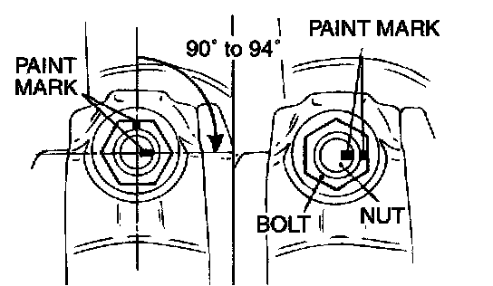 7. Turn the nut further 90 degree angle to 94 degree angle and make sure that the paint marks on the nut and bolt are aligned.