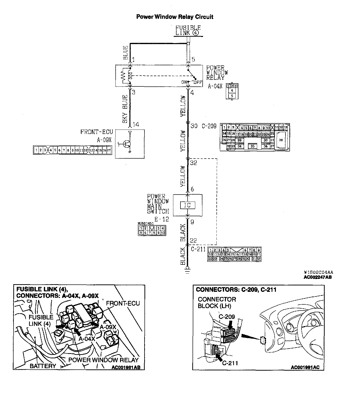 - The power window relay is controlled by the front-ECU and the ETACS-ECU