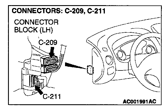 NOTE: After checking intermediate connectors C-209 and C-211, check the wires. If intermediate connectors C-209 and C-211 are damaged, repair or replace them. Refer to Harness Connector Inspection.