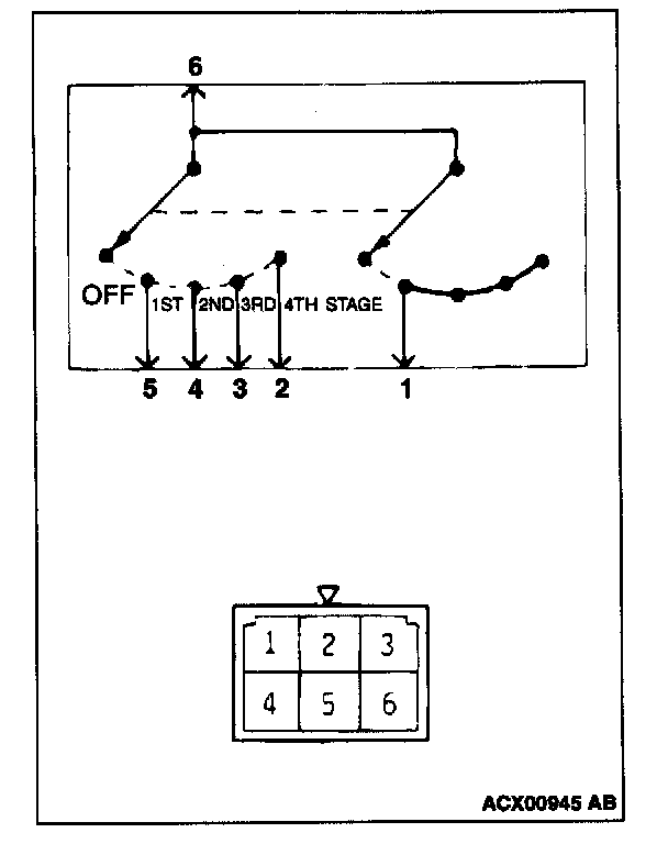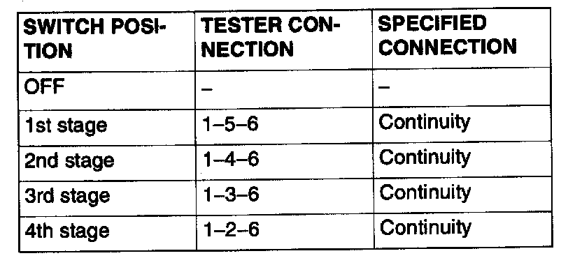 This figure illustrates a complex switch. The continuity between terminals at each position is as indicated in the table.